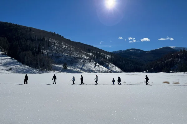 Explore las montañas a pie. Cuando la nieve cubra el suelo, disfruta del paisaje mientras hace ejercicio cardiovascular con raquetas de nieve. Alquiler equipo en el Centro Nórdico de Vail. Explore el mundo con un naturalista en Walking Mountains Science Center en la parte superior de Eagle Bahn Gondola. Cuando la nieve se derrita, camine alrededor de Shrine Pass, en la cima de Vail Pass, o tome la góndola en las montañas Vail o Beaver Creek y vea vastos campos de flores silvestres.
